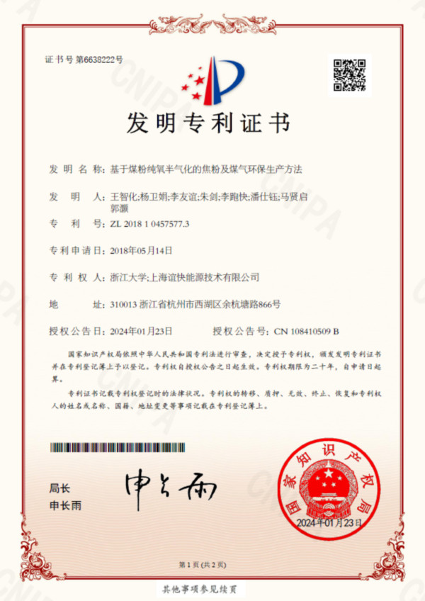 • 發明專利——煤粉純氧半氣化